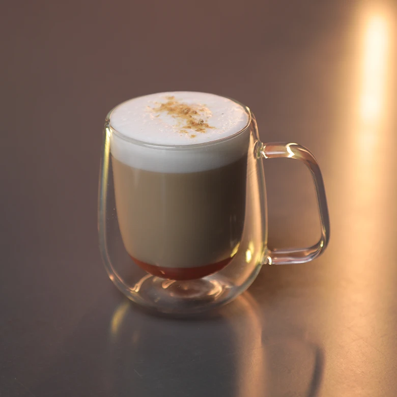 عصاره قهوه تک شات/شیر گرم 200 میل/عسل چند گیاه 20 میل/ مقدار پودر زنجبیل